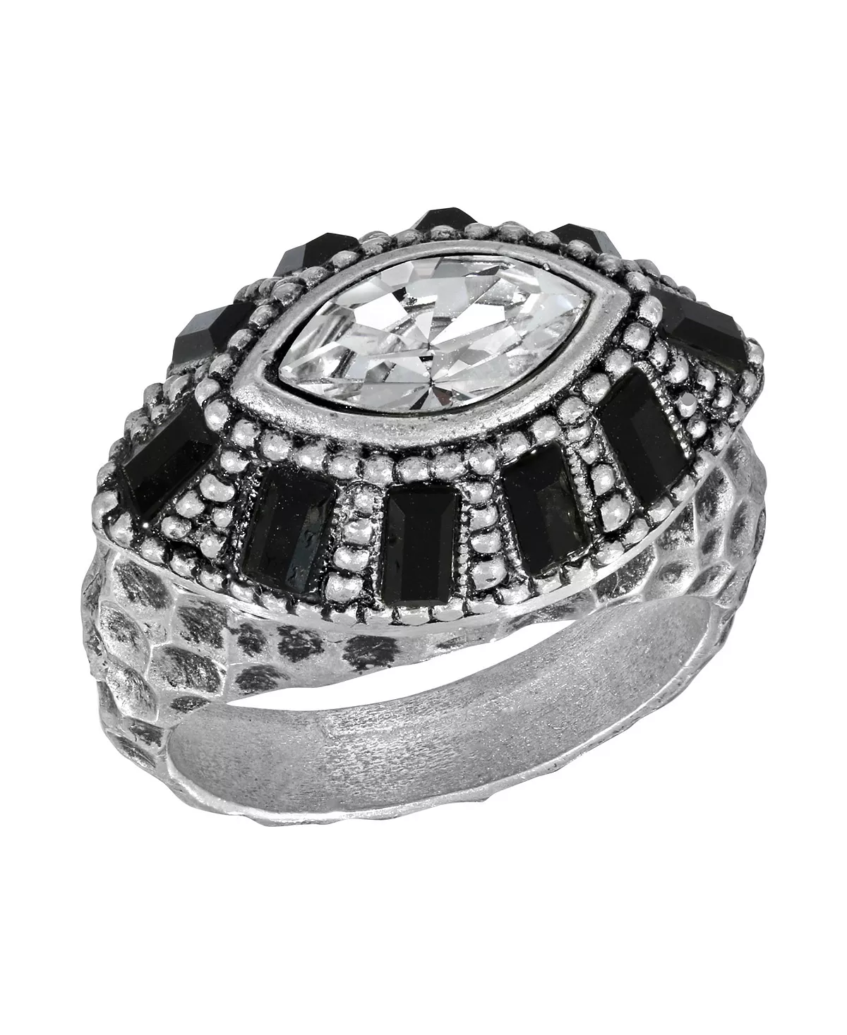 Show off your retro style with this pewter and crystal ring.