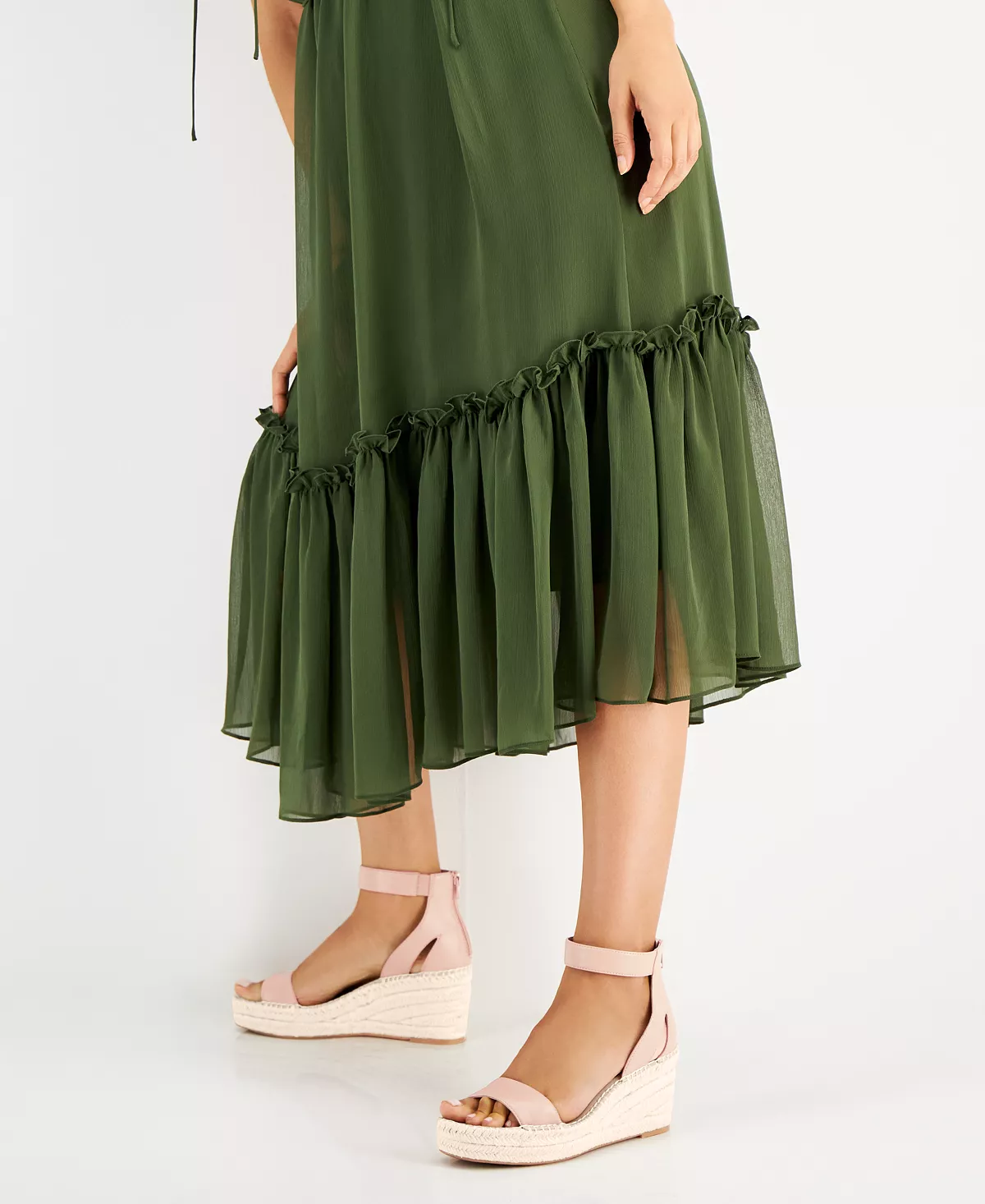 Lofted on chunky platform heels, the Cohjo wedges from Alfani add sturdy ankle straps to espadrille texture for a beachy look.