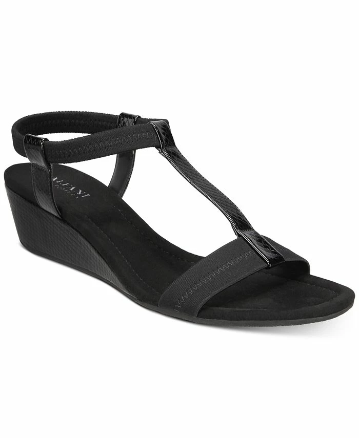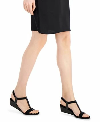 Anchors aweigh! The Voyage wedge sandals by Alfani help set your course with comfortable elastic straps and a demi wedge heel.