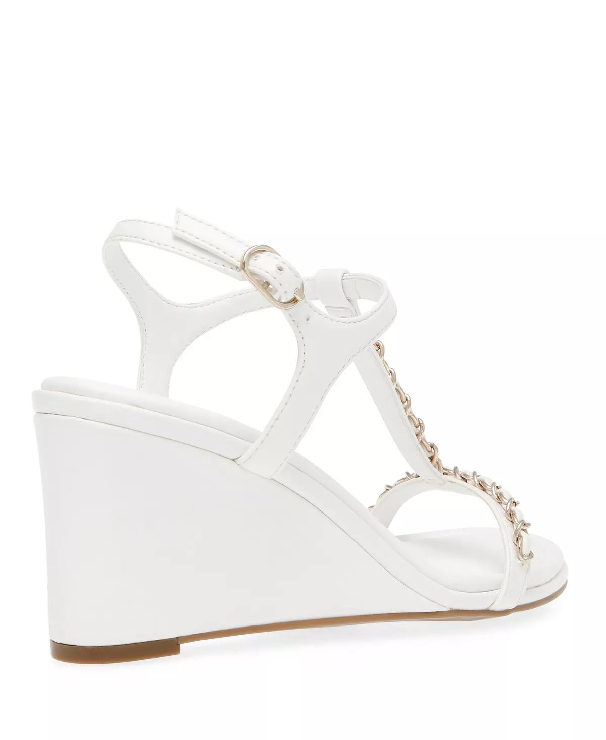 Chain detailing enhances this beautiful wedge, making it trendy and sophisticated for all occasions. Designed with comfort materials, these wedges give you a barely there feel.