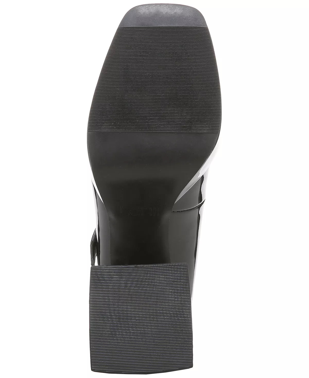- Square-toe ankle-strap platform pumps with adjustable buckle closure