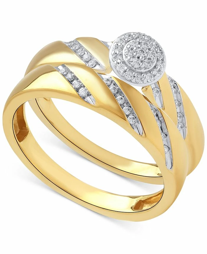Sparkling sophistication. This polished ring set features a halo-inspired ring and complementing band bedecked with single-cut diamonds (1/5 ct. t.w.). Crafted in 14k gold.