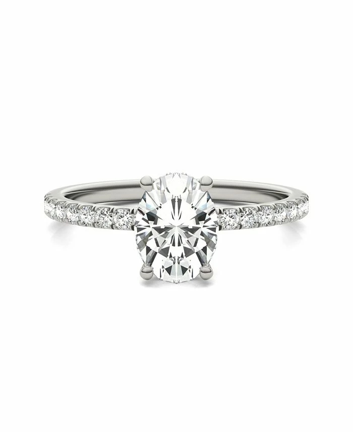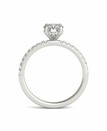 - Moissanite: round, 1-3/4 carat diamond equivalent , center stone – 1-1/2 ct. t.w.