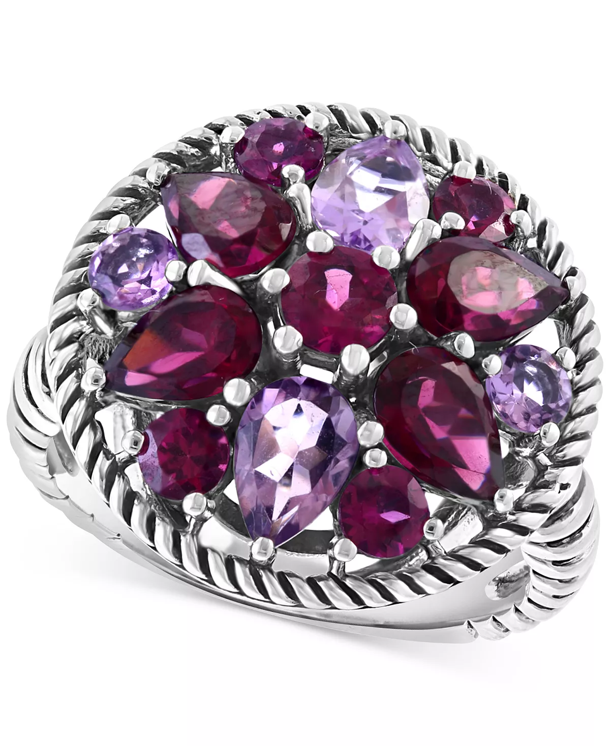 Let your style shine with the bold violet hues of this amethyst and rhodolite cluster statement ring from EFFY®.