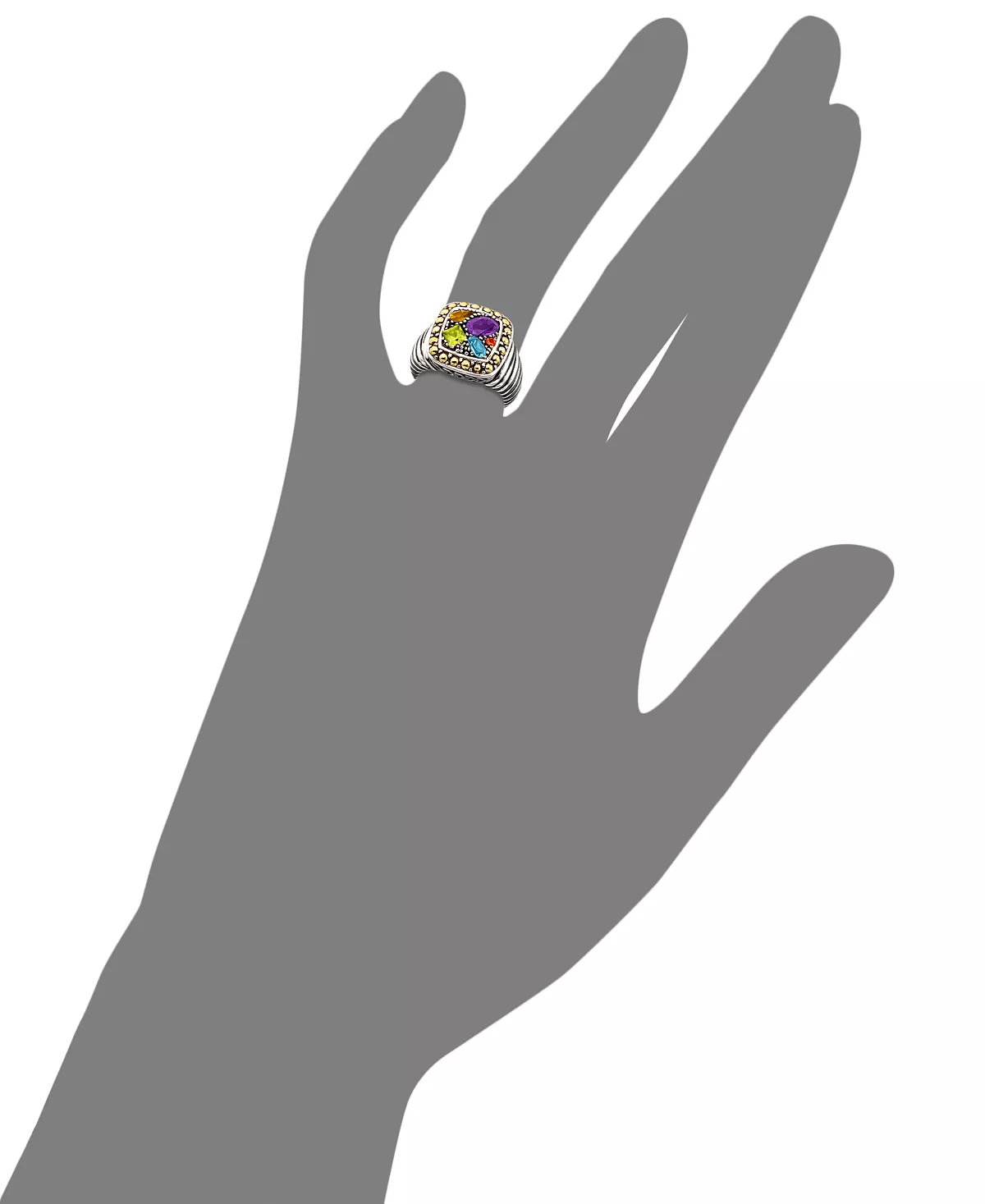 Make an entrance with this lively & lovely ring. Featuring a multitude of colorful gemstones including amethyst (3/4 ct. t.w.), blue topaz (1/3 ct. t.w.), citrine (1/5 ct. t.w.), peridot (1/3 ct. t.w.), garnet accents and diamond accents. Set in 18k gold & sterling silver; from Balissima by Effy Collection.