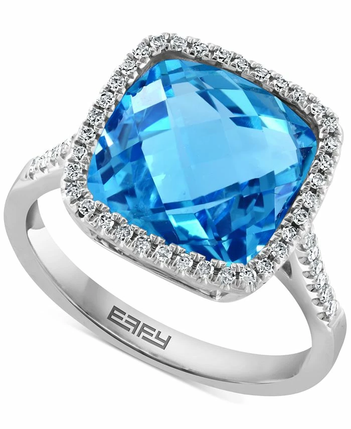 Bright blue sparkle brings glamour and intrigue to this beautiful blue topaz and diamond halo ring from EFFY®.