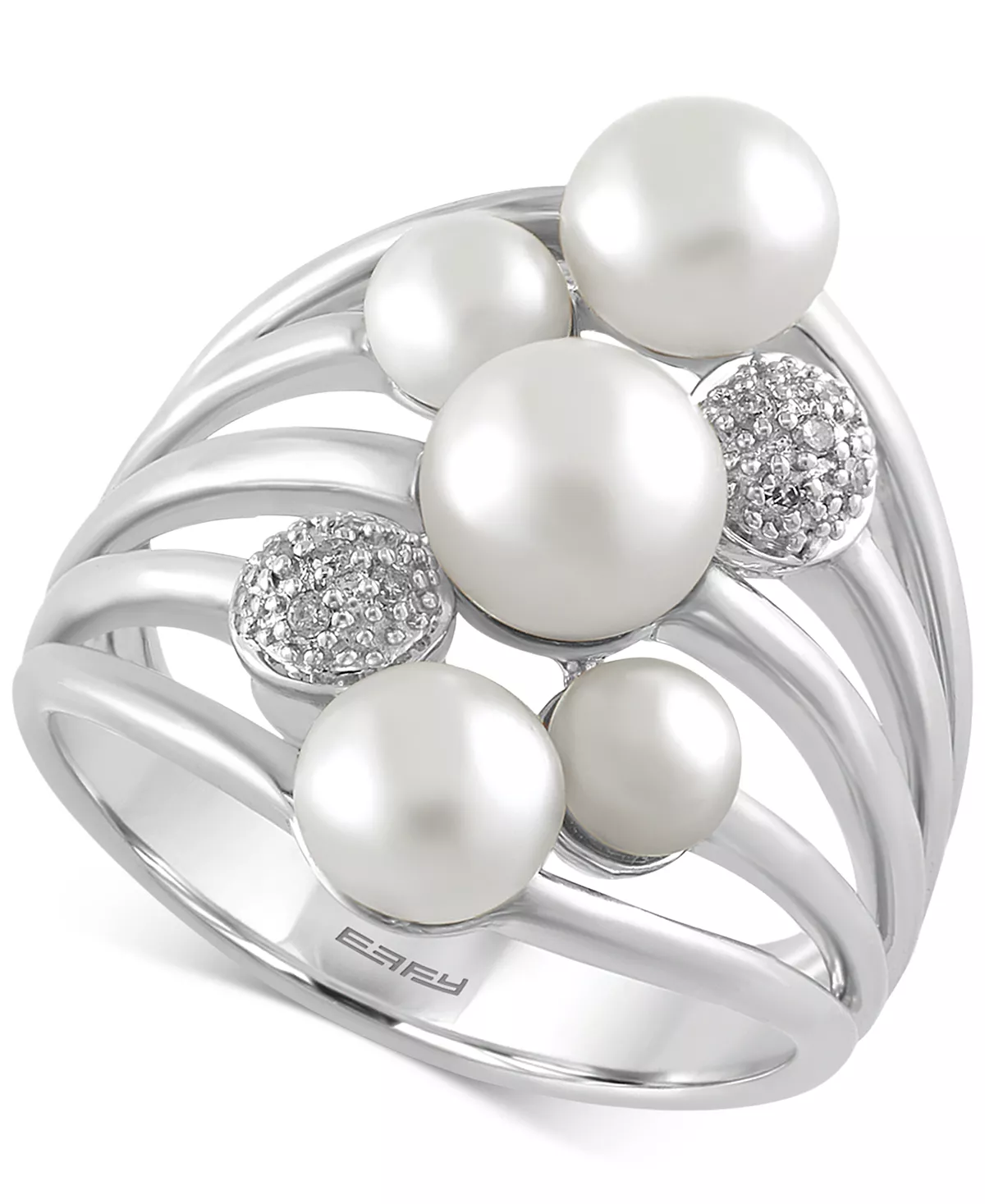 Clusters of cultured freshwater pearls (4mm-6.5mm) and diamond accents adorn this polished ring from EFFY, set in sterling silver.