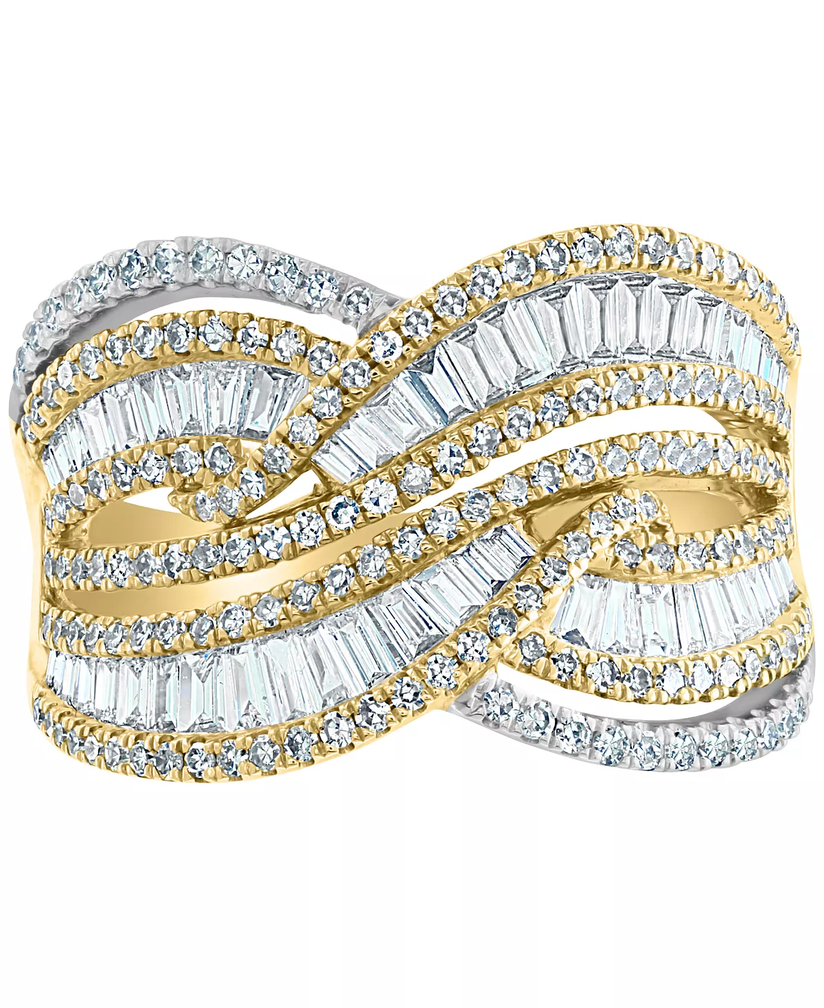 Make this EFFY® ring your personal statement piece, with its fabulous round and baguette diamonds, set in a dramatic two-tone crossover design.