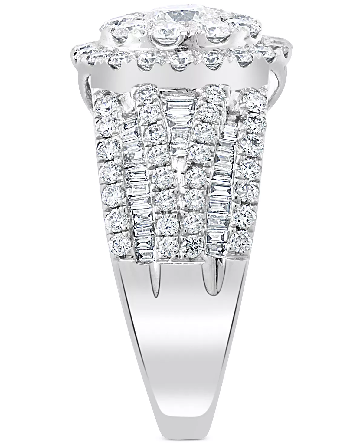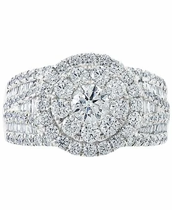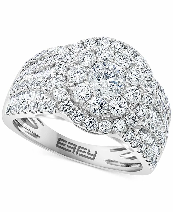 EFFY® brings an ethereal glow to your life with this breathtaking double halo diamond halo engagement ring, accented with round and baguette diamonds along the white gold shank.