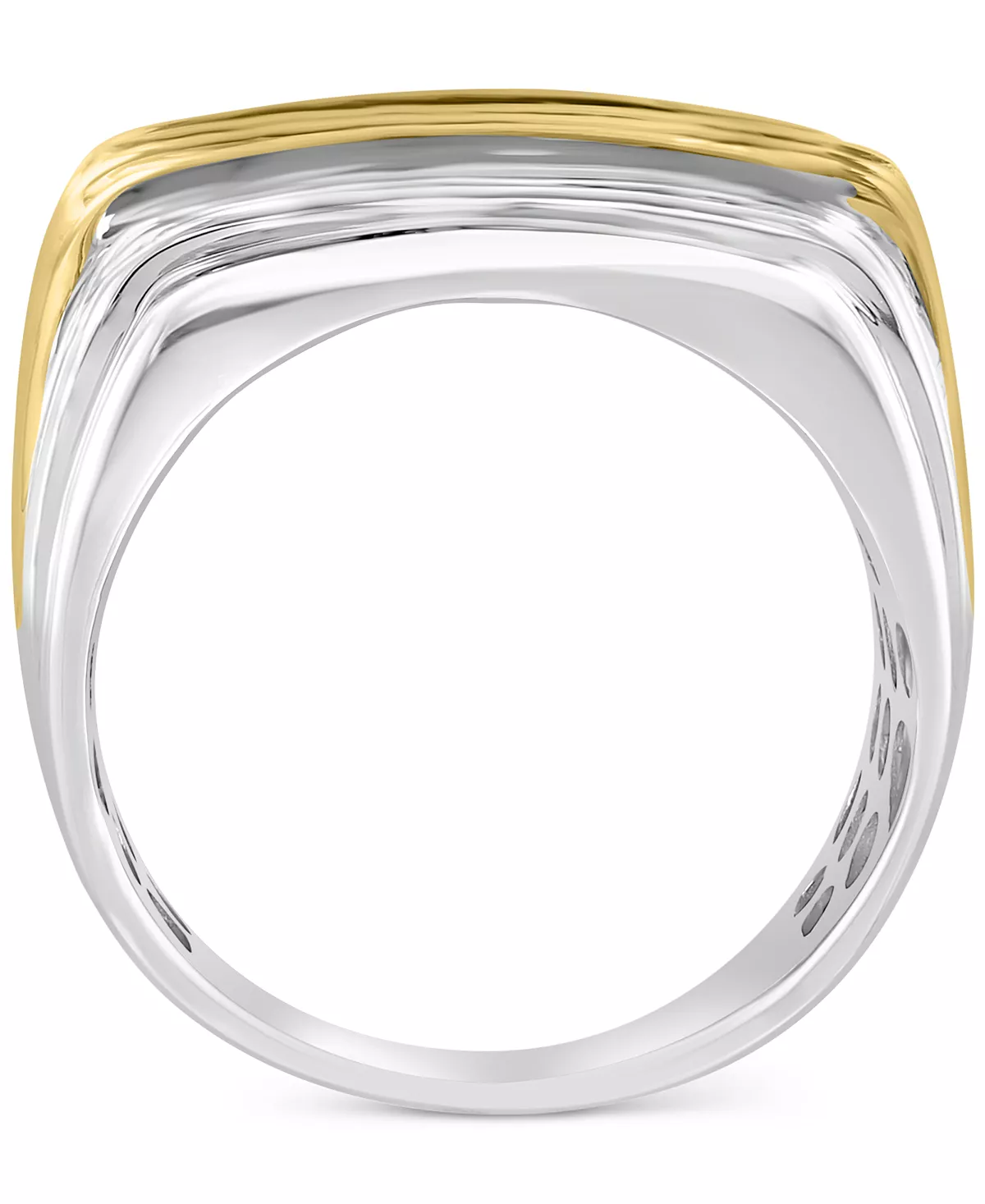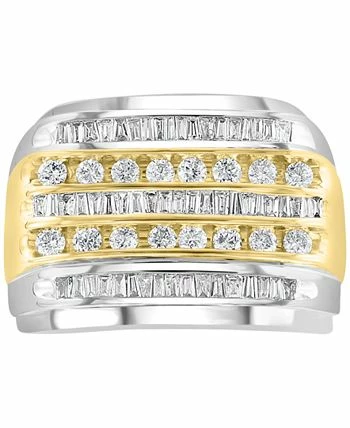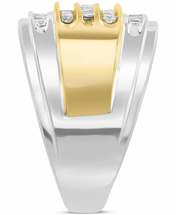 Two-tone styling enhances the unique features of this baguette and round diamond multirow men’s ring from EFFY®.