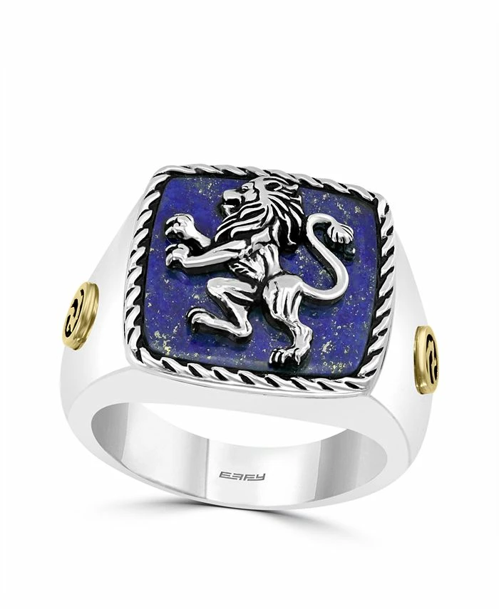 Inspired by ancient mythology and talismans, EFFY’s sterling silver ring intricately connects classical lore, the natural wonder of lapis lazuli and fine detailing in the form of 18k yellow gold.