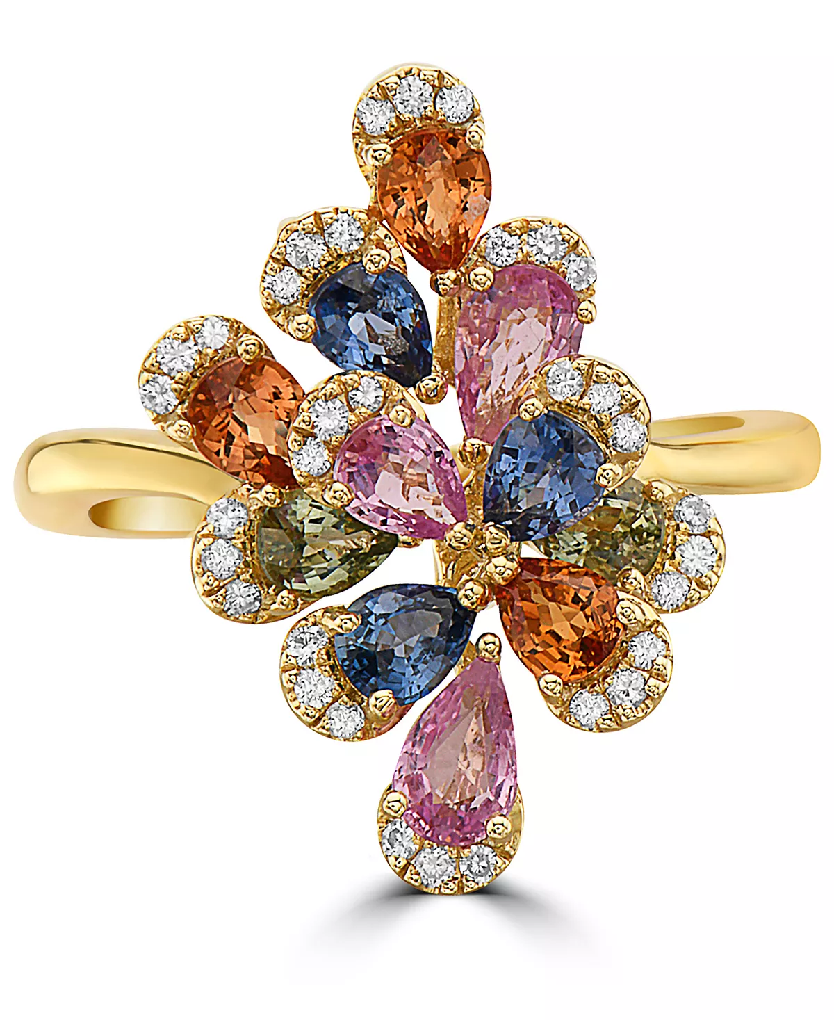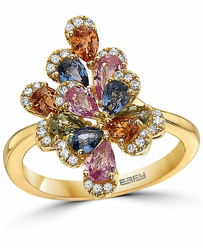 Delicate multicolor sapphire petals are edged with diamonds on a stunning floral statement ring from EFFY®.