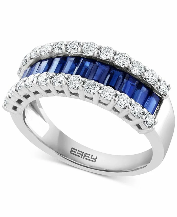 Indulge your love of color and fabulous design with this natural sapphire baguette and diamond statement ring from EFFY®.