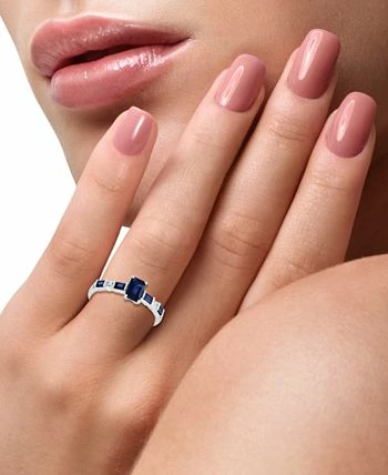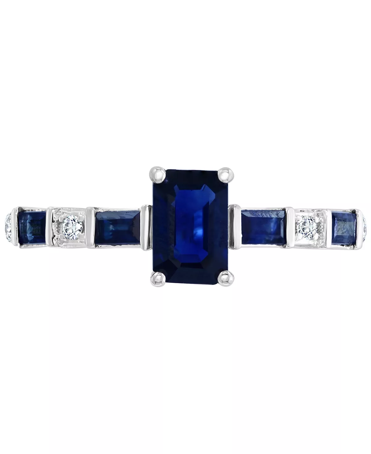 Stunning sapphire baguettes and round-cut diamonds lead the way to a breathtaking emerald-cut sapphire center on this beautiful ring designed by EFFY®.