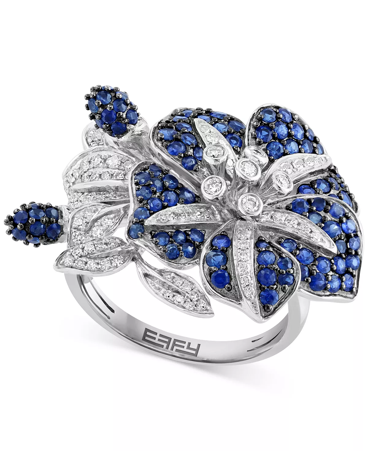 Your style will blossom with the sparkle and romance of this beautiful sapphire and diamond flower ring from EFFY®.