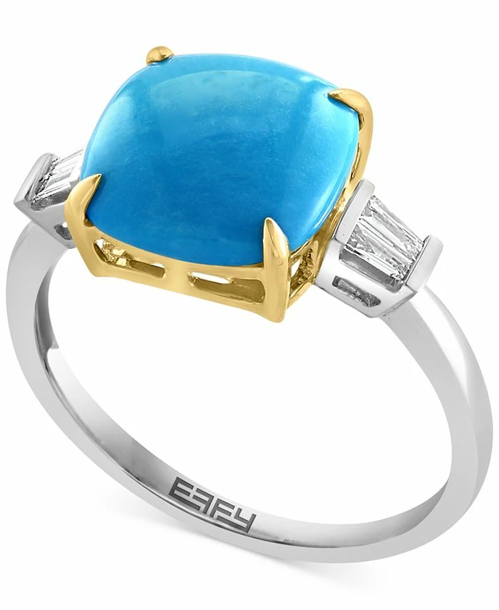 EFFY® combines color with contemporary style in this stunning turquoise and diamond baguette two-tone statement ring.