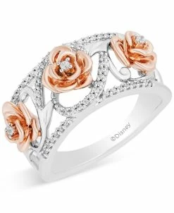 Rose gold flowers are accented by diamonds in this ethereal Belle-inspired band from Enchanted Disney Fine Jewelry.