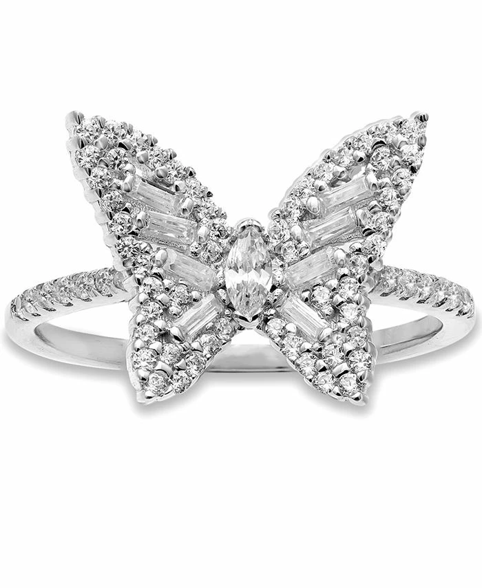 Giani Bernini transforms your style with this elegant baguette and round cubic zirconia butterfly statement ring.