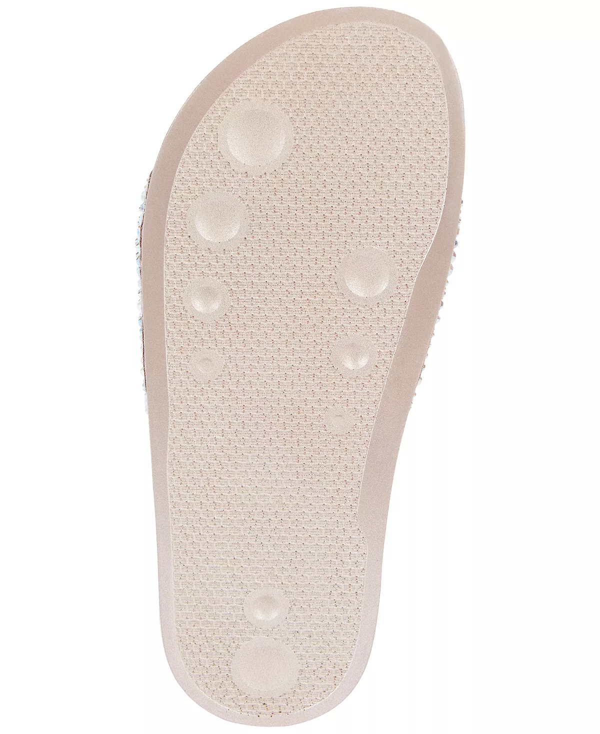 A casual slide profile goes glam in the glittering rhinestone embellishments on the wide strap design of INC International Concepts’ Peymin pool slide sandals.