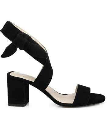 A bow at the ankle adds a little extra flair to the Hether by Journee Signature. This toe strap heel features a crisscross detail and covered block heel. Genuine suede uppers shape this must-have look, and a 4mm tru comfort foam footbed lines the insole.