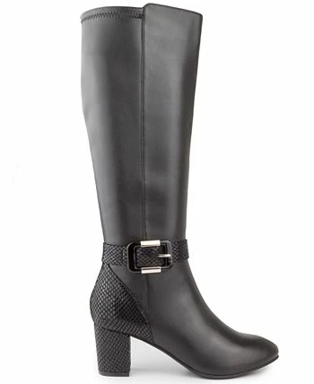 Dress up skinny jeans and accent pencil skirts in the gorgeous lines of Karen Scott’s Isabell wide-calf buckled boots.