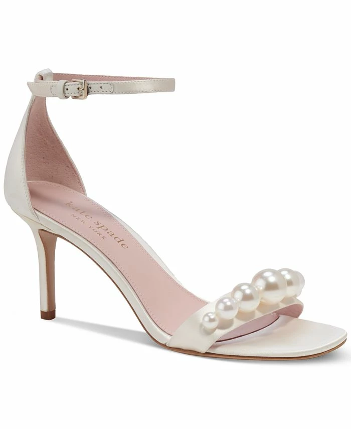 Pearl-like beading adds elegant shimmer to slender ankle straps in the feminine Avaline sandals from Kate Spade New York.
