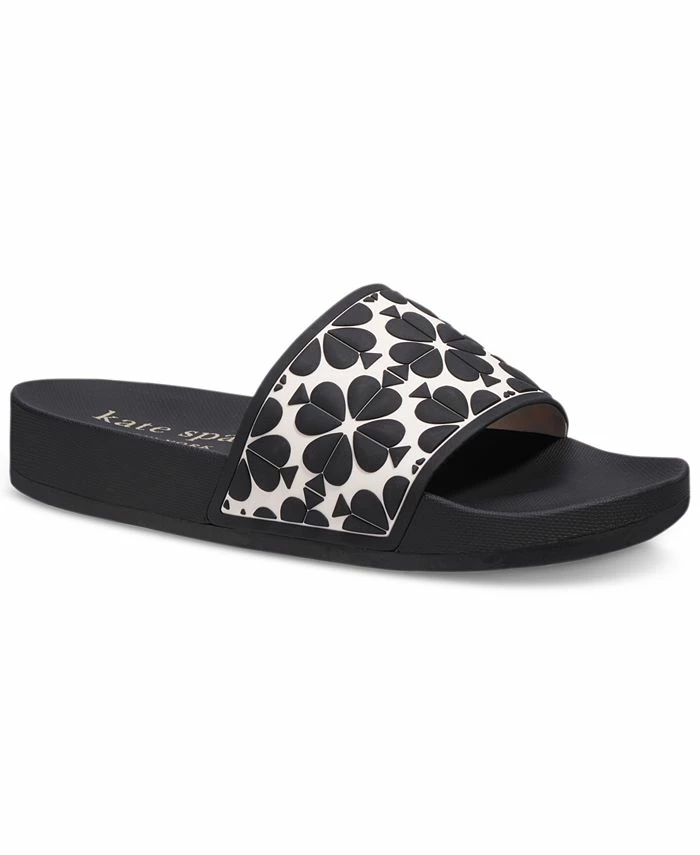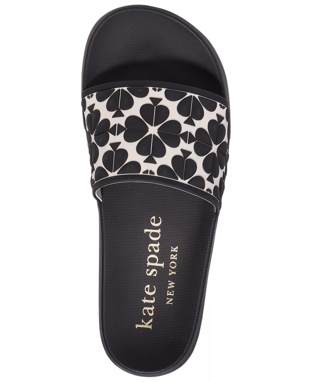 Signature graphics add striking contrast to the cool Olympia slides by Kate Spade New York.