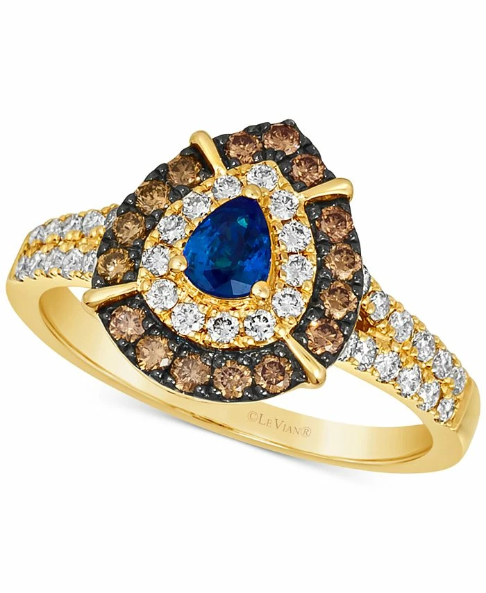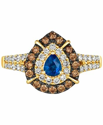 Le Vian® invites you to dazzle with this stunning pear-shaped halo ring, created with a blue sapphire, Nude Diamonds™, and Chocolate Diamonds® in a 14k gold setting.