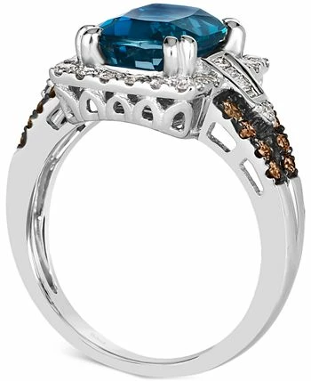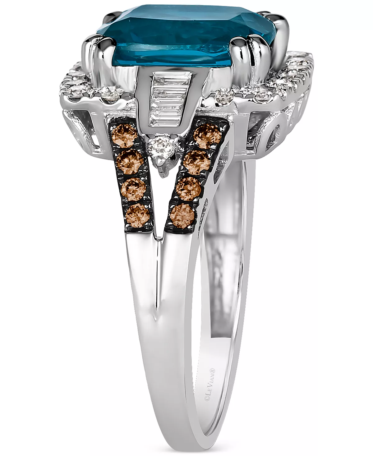This bold, breathtaking ring from Le Vian shimmers with a Deep Sea Blue Topaz™ center, with a halo of round and baguette Vanilla Diamonds®, and Chocolate Diamond® accents.
