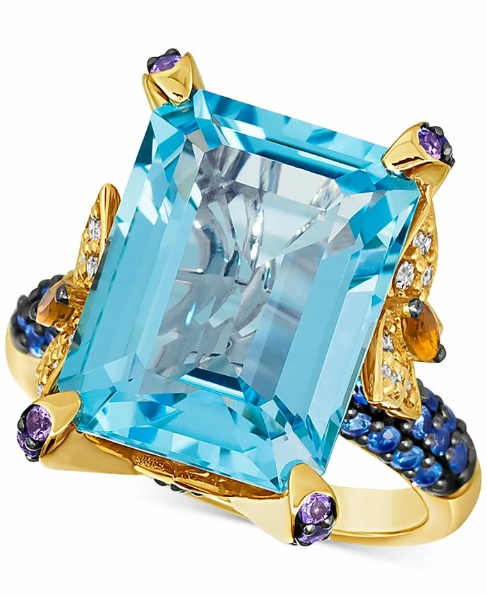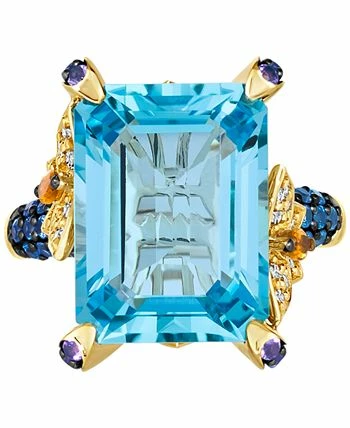 A delicate Vanilla Diamond® butterfly is perched on a colorful precipice, on this beautiful Le Vian Ring set with a center blue topaz, enhanced with the jeweled tones of Cinnamon Citrine®, Blueberry Sapphire™ and Grape Amethyst™.