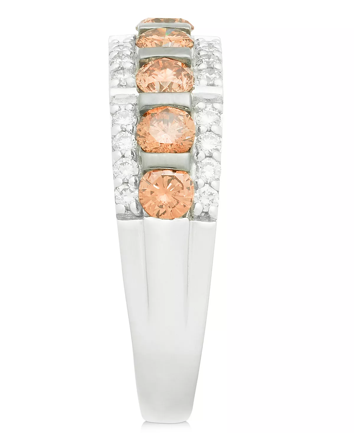 Gorgeous Chocolate Diamonds® are bordered by a shimmering Nude Diamond™ border in this dramatic Le Vian white gold band.