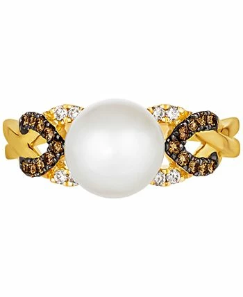 Sparkling twists of Nude Diamonds™ and Chocolate Diamonds® lead to a dramatic Vanilla Pearl™ in this elegant openwork ring from Le Vian.