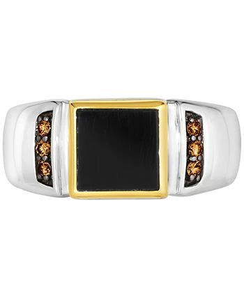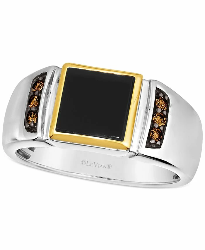 A sleek onyx stone is highlighted with Chocolate Diamonds® in this sophisticated two-tone men’s ring from Le Vian.