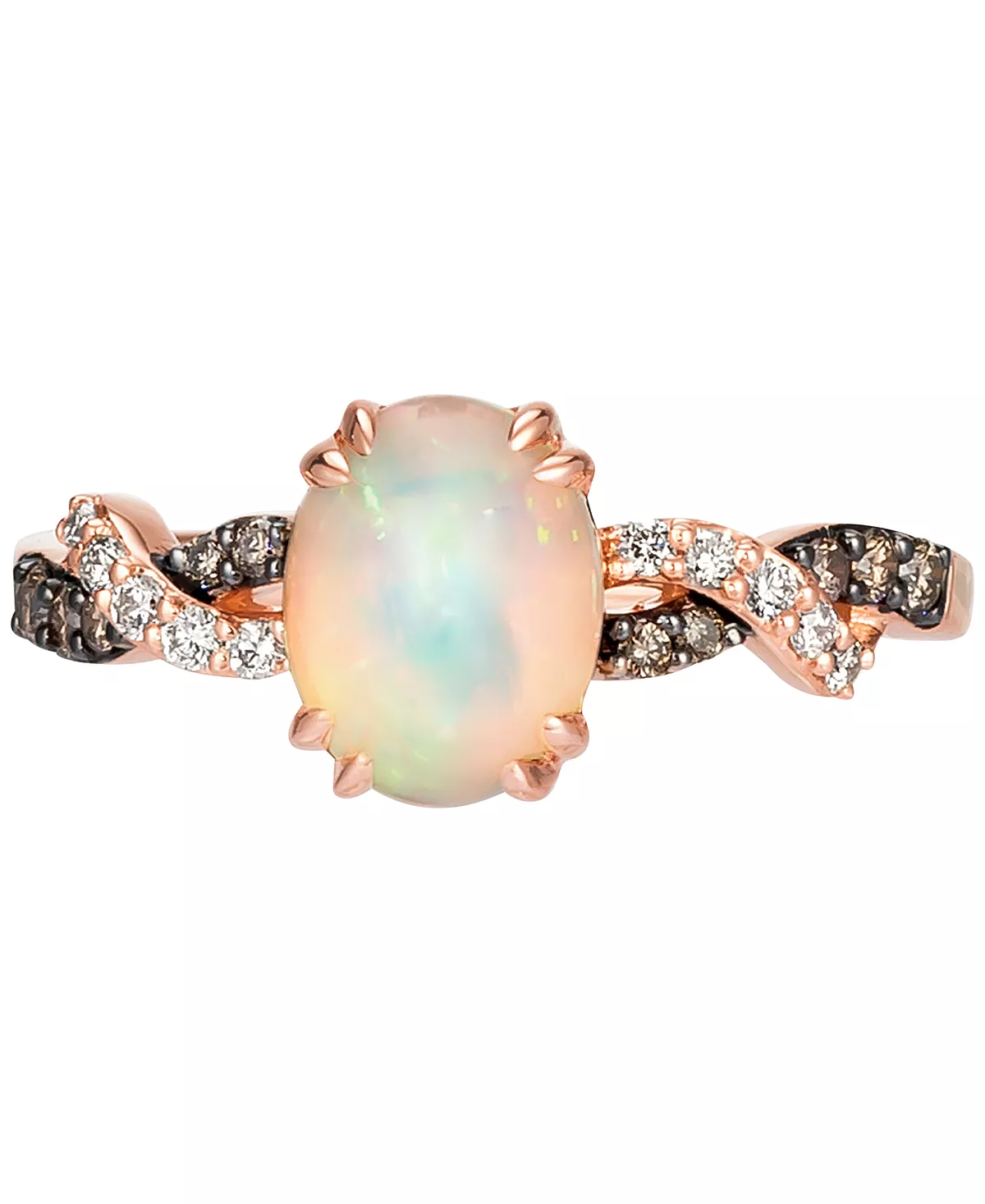 When your favorite flavor is elegance, this Le Vian Neopolitan Opal™ statement ring set in a twisted shank lined with Chocolate Diamonds® and Nude Diamonds™.