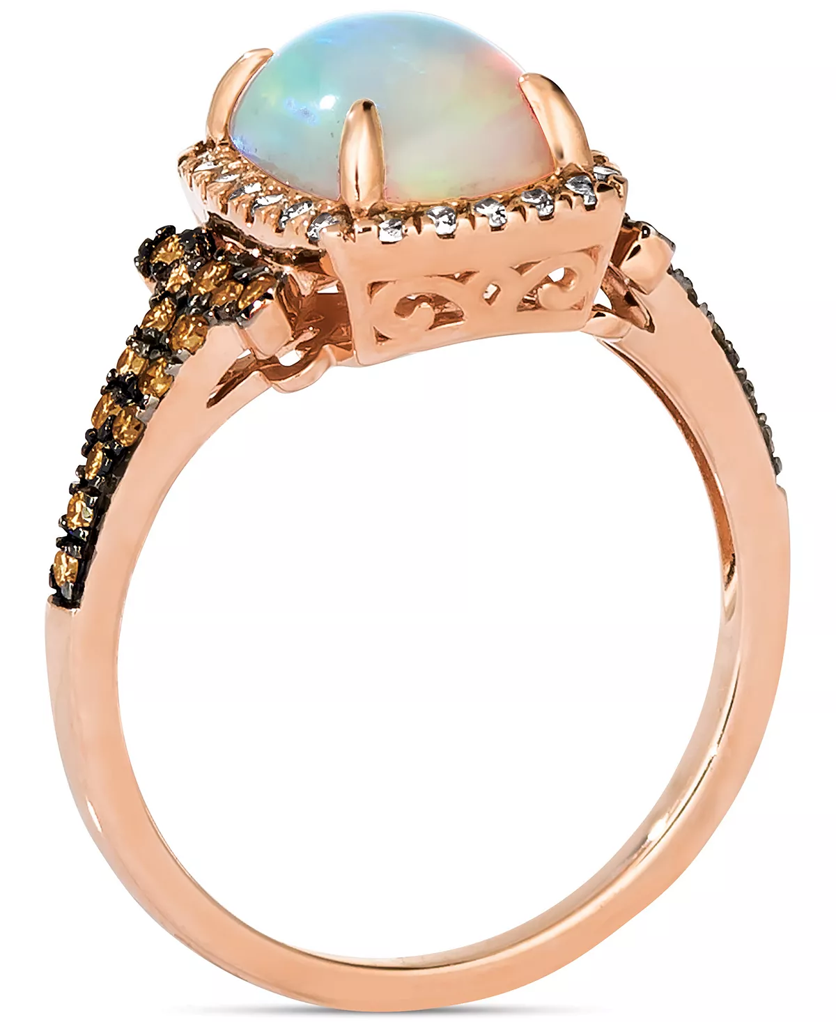 Chocolate Diamonds® and Nude Diamonds™ provide an elegant backdrop to a stunning Neopolitan Opal™ on this dramatic statement ring from Le Vian.