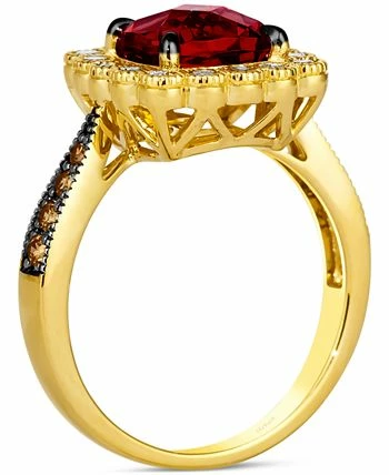 Milgrain beading brings a vintage vibe to this elegant Le Vian ring, set with a Pomegranate Garnet™ in a halo of Nude Diamonds™ with Chocolate Diamonds® adding extra sparkle to the shank.