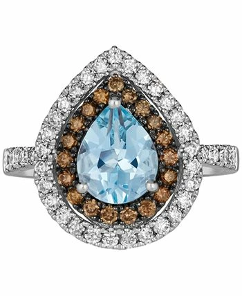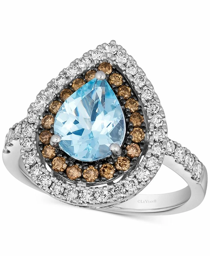 Feel beautiful in the exquisite hues of this Sea Blue Aquamarine® teardrop ring, from Le Vian, set with halos of Chocolate Diamonds® and Nude Diamonds™ in 14k white gold.