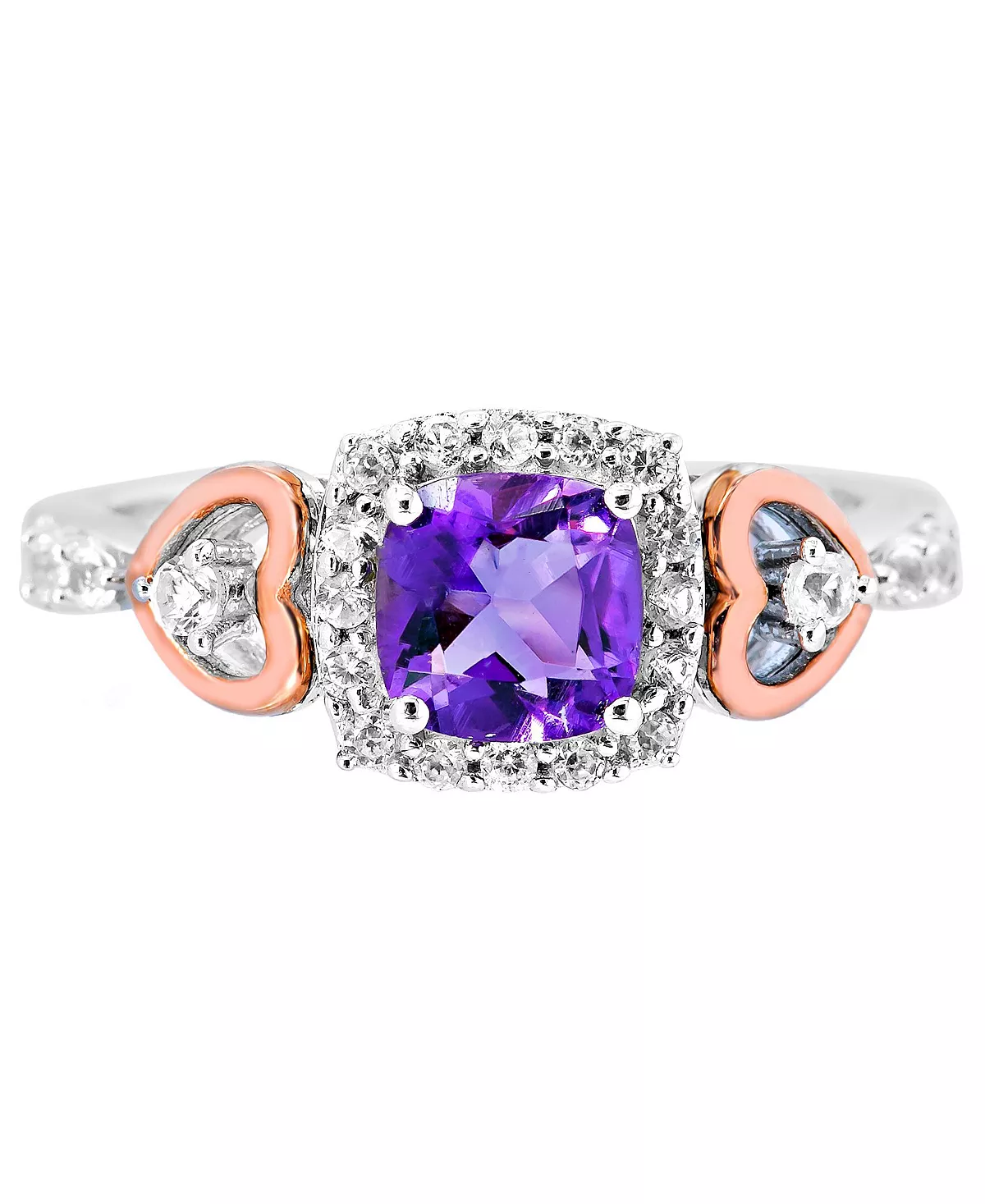 A breathtaking combination of purple amethyst and white topaz ring accented by a delicate heart. Set in sterling silver and 14k rose gold-plate.