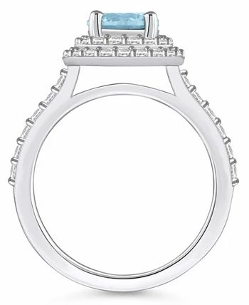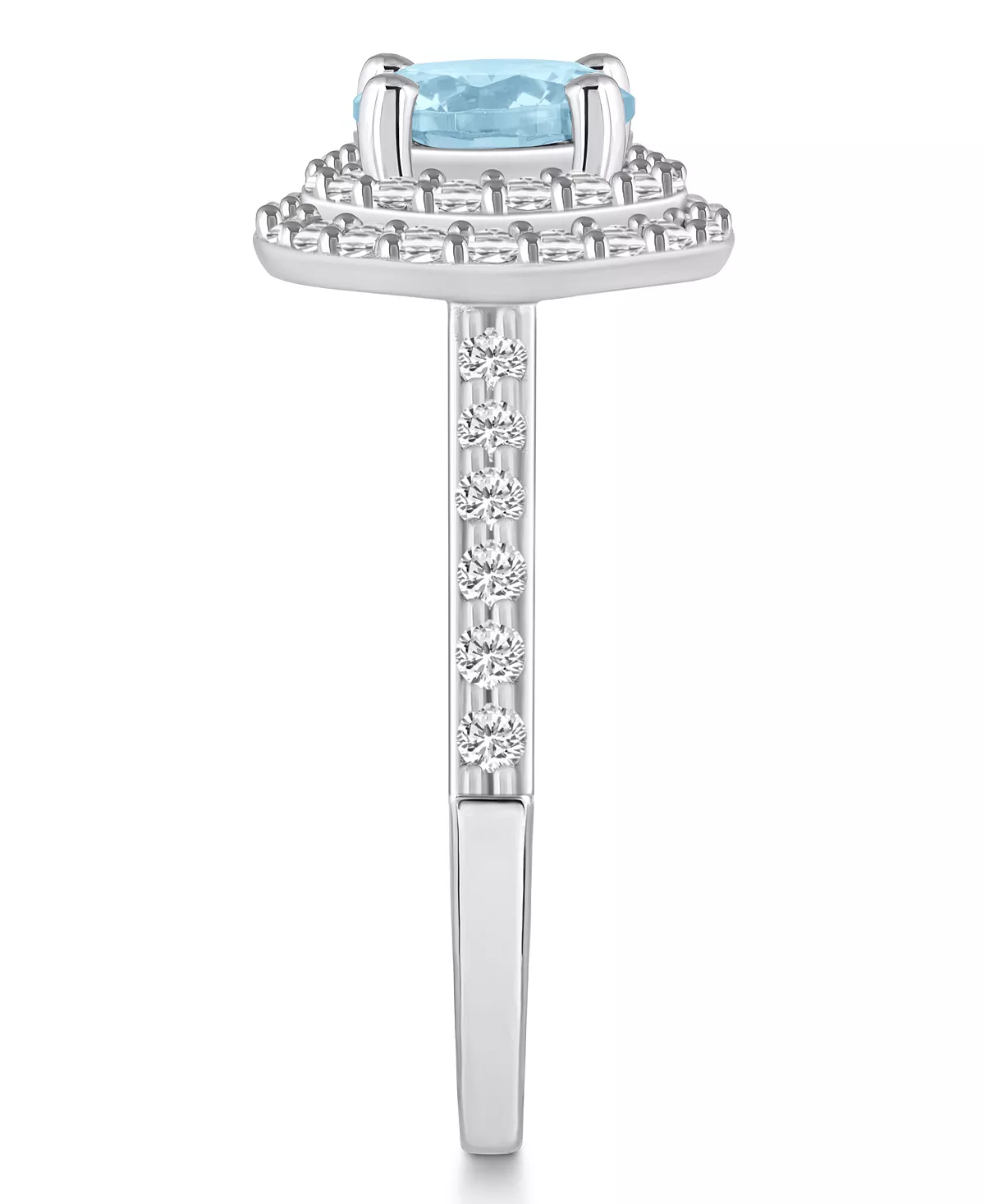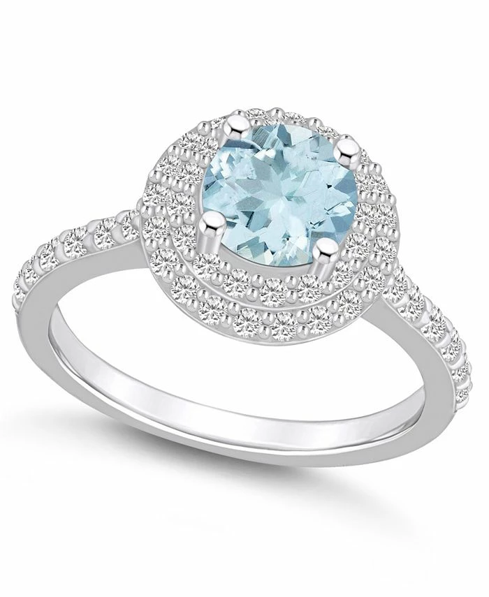 A delectable 7mm round aquamarine is haloed by brilliant round diamond accent in this enticing statement ring.