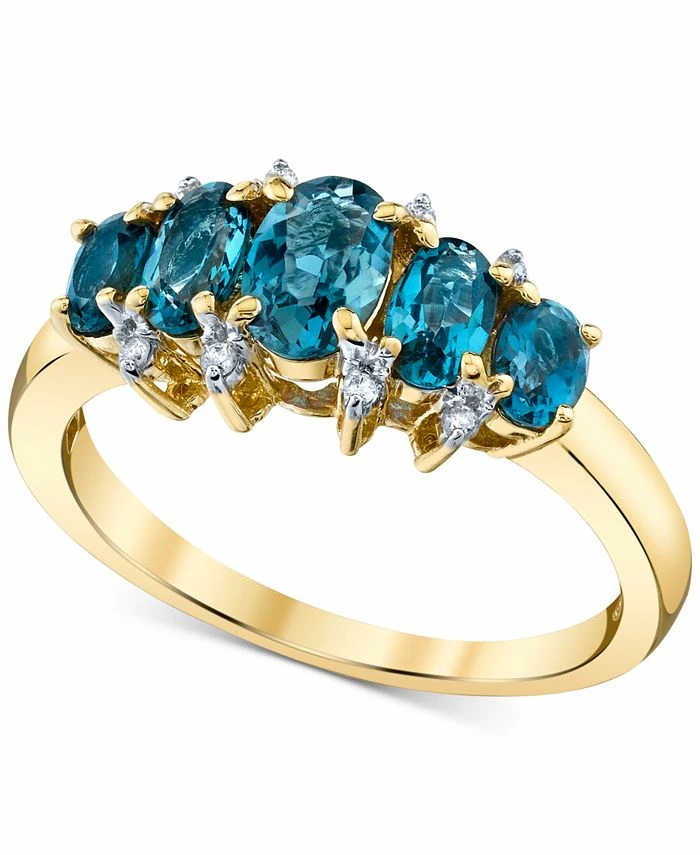 A graduated design highlights the beauty of this blue topaz and diamond accent statement ring.