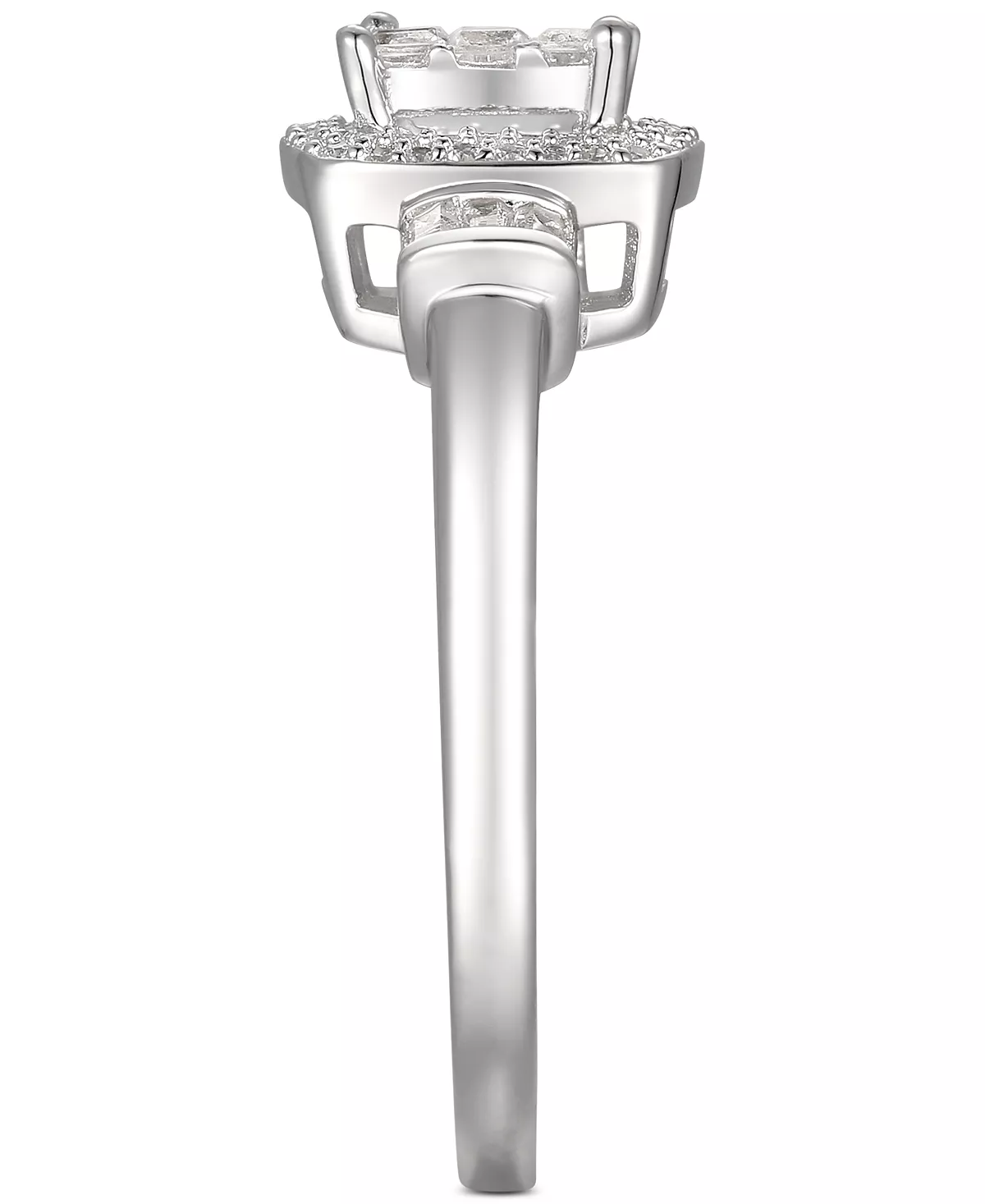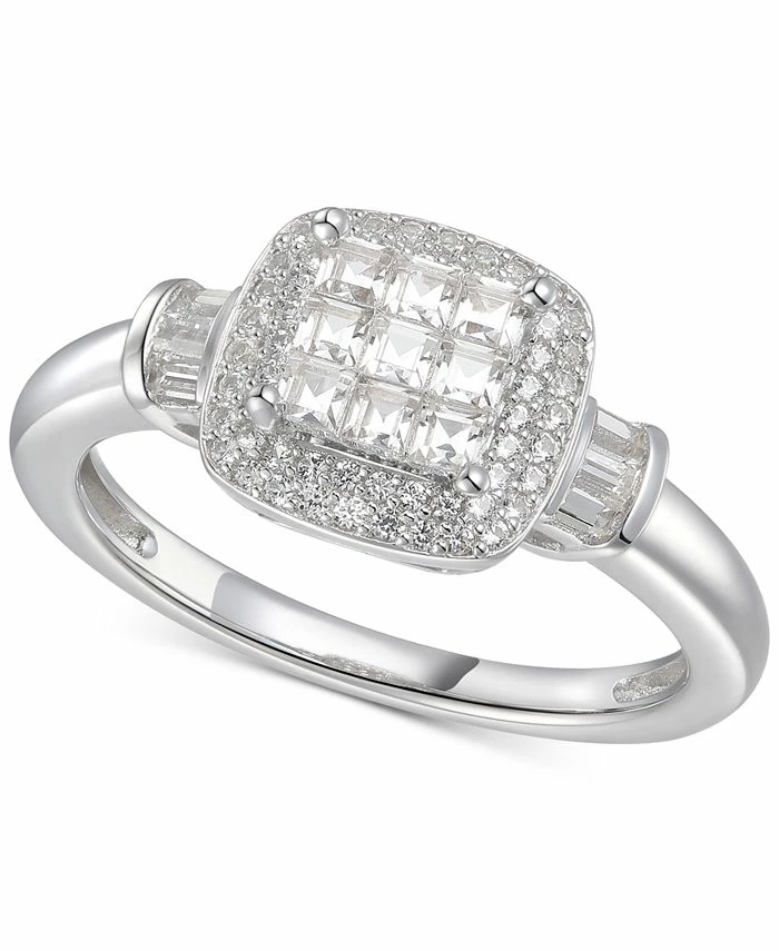 Nothing short of spectacular, this beautiful ring shines with square, round and baguette cubic zirconia in a gleaming sterling silver setting.