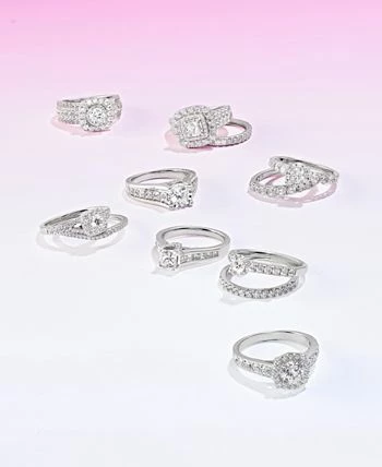 Special occasion sparkle. This luminous ring set epitomizes wedded bliss. Wedding band and engagement ring feature round-cut diamonds (2 ct. t.w.).