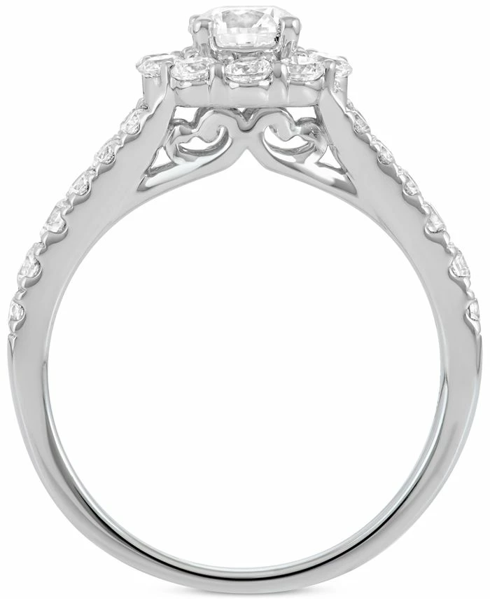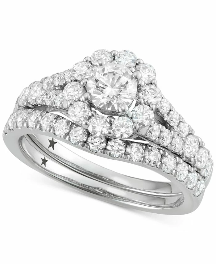 Exquisite design meets high caliber sparkle in this exceptional round-shape diamond bridal set (2 ct. t.w.) with a quality center diamond (1/2 ct. t.w.) and a stunning matching diamond band. Set in 14k gold.