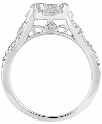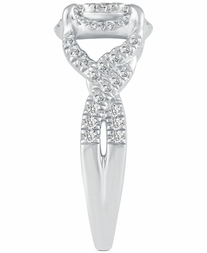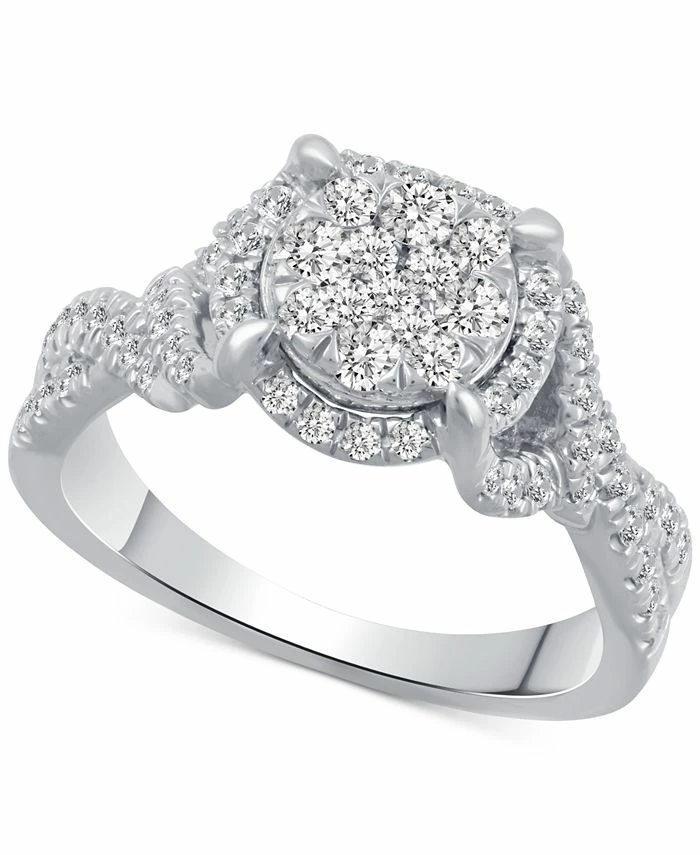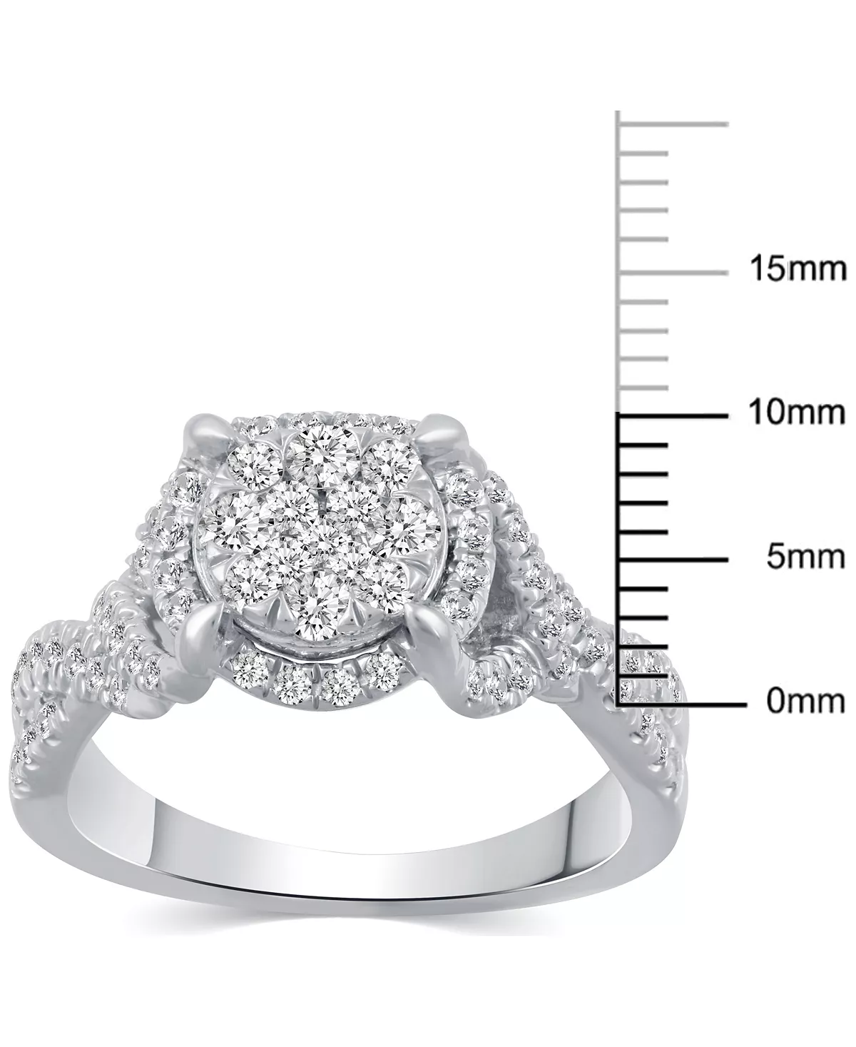 Promise her love and sparkle with this beautiful diamond halo cluster engagement ring, set with a myriad of accent diamonds in a twisted shank design.