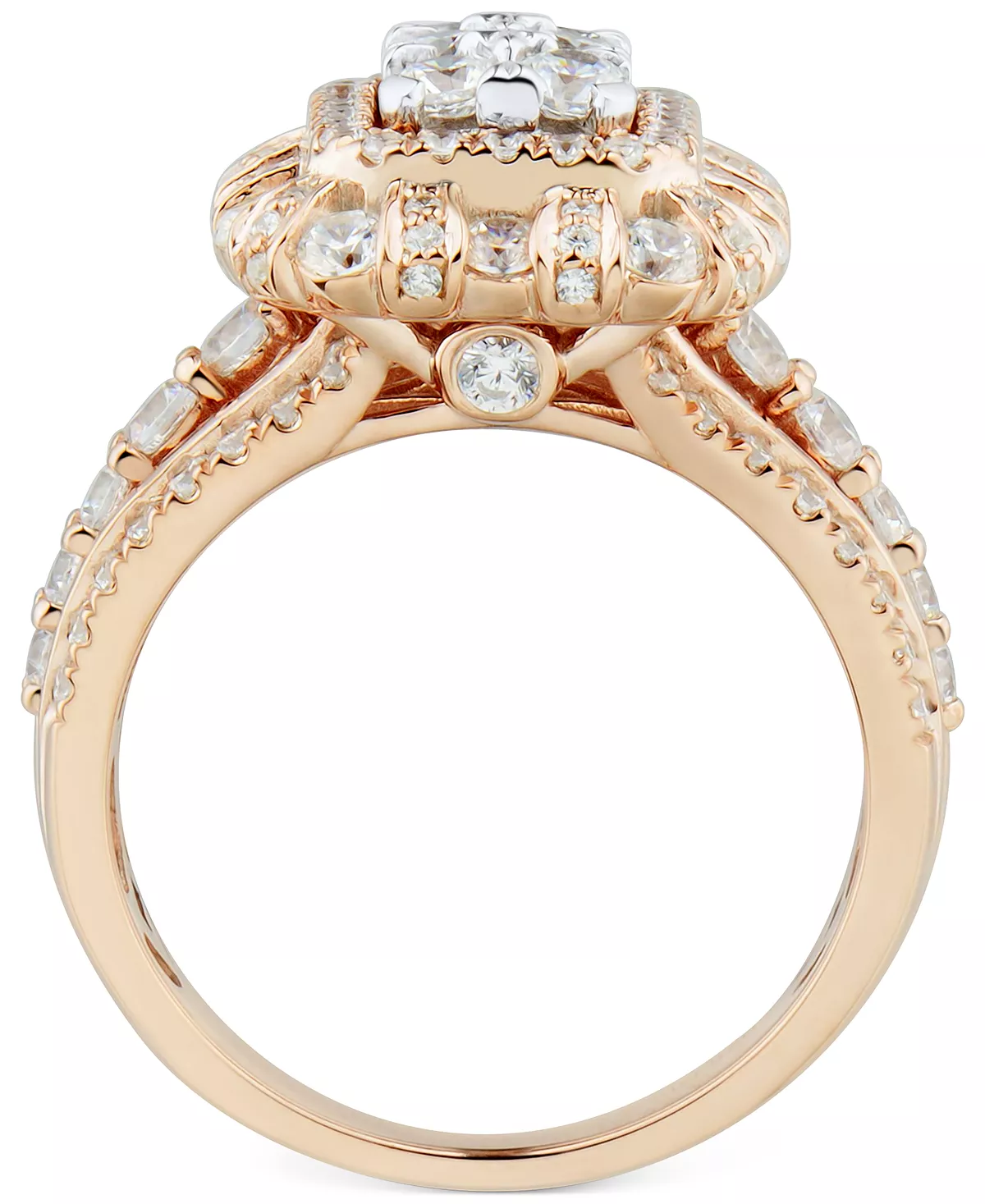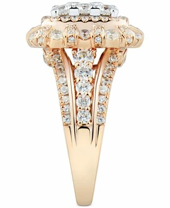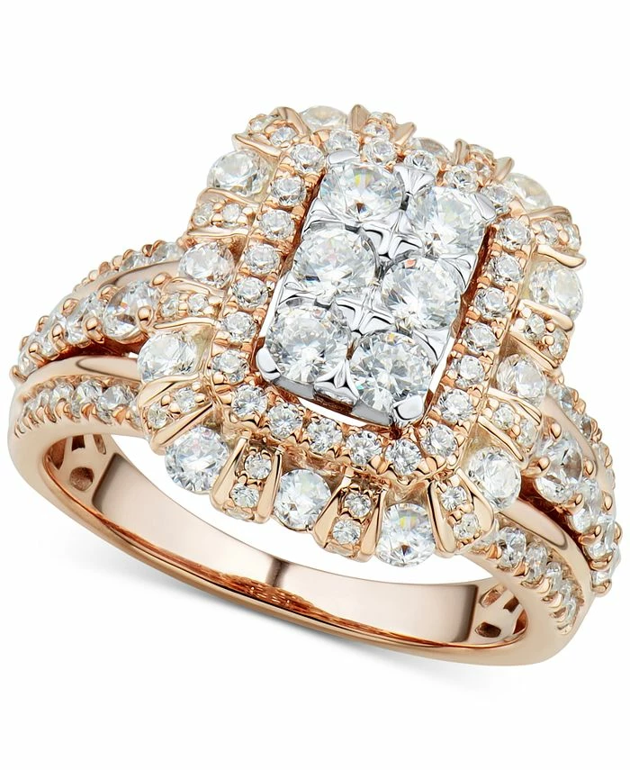 Exquisite sparkle radiates from every angle of this stunning ring. Designed in rose gold, the center cluster features six large round diamonds in a contrasting setting.