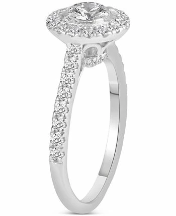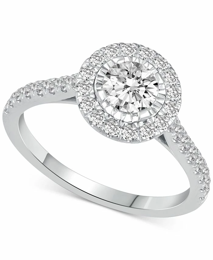 A grand new look to the classic engagement ring, a beautiful halo design that showcases sparkle.