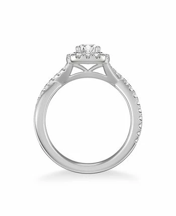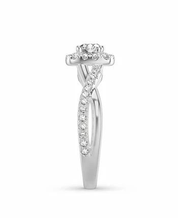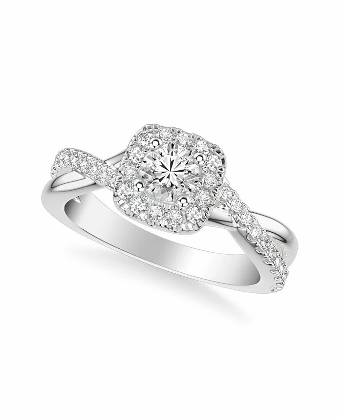 Chic and Stylish! This sophisticated diamond (7/8 ct. t.w) engagement ring is the perfect way to pop the question. With a halo setting, round center stone and half diamond half polished twist band, she’ll won’t want to wait to say “I do.”