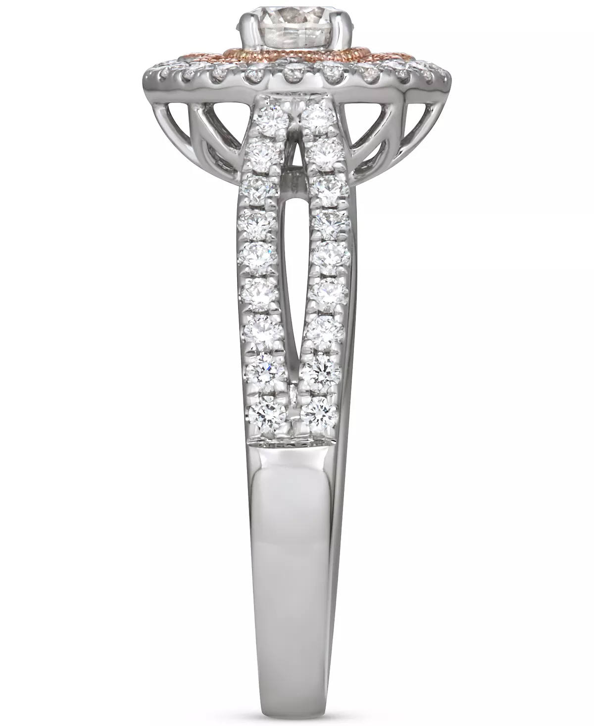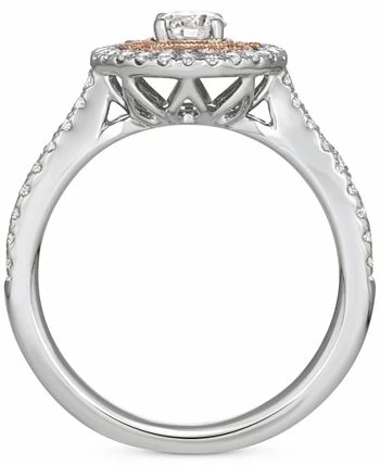 A rose gold star pattern adds a sense of intrigue to this beautiful engagement ring, set in white gold with a beautiful principal diamond (1/3 ct. t.w.), and additional halo and accent stones.