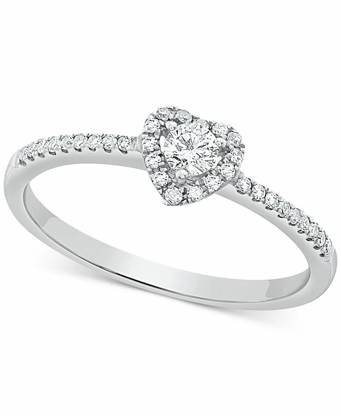 Romance blooms in this beautiful diamond engagement ring, set with a sparkling center (1/10 ct. t.w.) in a heart halo of accent stones.