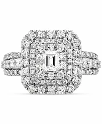 Fall madly and deeply in love with the dazzling design of this over-the-top engagement ring, set with an octagon center stone (1/4 ct. t.w.) wrapped in triple halos of diamonds, and set on a triple row diamond shank.